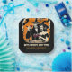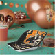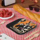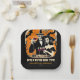 Halloween wicked good time a witch and Dracula toasting wine adults costume dress up party tableware template personalised plates, groovy retro style orange black and white
