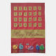 Merry Christmas illustration featuring an advent calendar and colourful Christmas baubles on a red background.