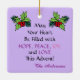 at christmass as a hanging decration for the chritmass tree.. its white porcline or cramic but very well made with added photo on one side.. also has a lovley red bag to keep it in.. execlent printed text in bold and black stands out well aganst the blue background of the photo.