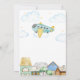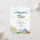Cute whimsical aeroplane pilor baby shower theme, design feature watercolor vintage town and blue and yellow aviator over the the sky with "Adventure Awaits" text, perfect for baby boy and girl baby shower. you can customise your own text and colour.