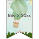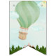 Celebrate your little one’s journey with this Adventure Awaits baby shower banner! Featuring a whimsical hot air balloon over mountains and trees with a blue sky and clouds, this bunting is the perfect backdrop for your celebration.