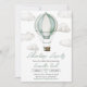 Celebrate the upcoming arrival with our Gender Neutral "Adventure Awaits" Baby Shower Invitation. Featuring a charming green hot air balloon floating among soft white clouds on a clean white background, perfect for setting the tone for a joyous and adventurous baby shower. BBS385