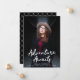 Trendy graduation announcements featuring the graduate's vertical photo with "Adventure Awaits" in white handwritten script lettering. Personalise the front of the Adventure Awaits graduation announcements by adding the graduate's name, school name, and graduation year. The announcement reverses to display an elegant black and white trellis pattern.