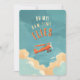Board the flight to fun with our Adventure Awaits Aeroplane First Birthday Party Invitation! This charming design takes flight with a vintage red biplane soaring through fluffy white clouds against a serene teal sky. The playful orange lettering captures the spirit of adventure and the joy of your little one’s first birthday celebration. The invitation is framed by the soft, dreamy hues of the sky, hinting at a day filled with imagination and excitement. Perfect for your little pilot-in-training, this invitation is your ticket to a birthday bash that’s sure to soar above the rest!