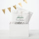 This baby shower favour bag offers an adventure theme showcasing a watercolor wilderness landscape of mountains, ponds and pine trees.