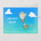 Adventure awaits the child receiving this cool hot air balloon invitation postcard.