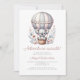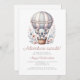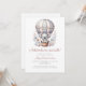 This cute baby shower invitation features a sweet watercolor koala in a grey and pink striped hot air balloon, above the words "Adventure awaits!" in retro script. Personalise the text with the name of the mum-to-be in script and the details in sans serif font. The reverse side provides space for diaper raffle, books for baby, and registry details, along with a convenient QR code guests can scan to visit the registry. Ideal for a girl's baby shower.