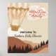 Greet your guests in style with this adorable Adventure Awaits baby shower welcome sign, professionally printed on sturdy poster print. Designed for a boy’s shower, this sign features a soft watercolor illustration of a sweet teddy bear floating in a hot air balloon over earth-tone mountain scenery, setting the tone for a heartwarming, nature-inspired celebration.