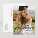 This simple "adventure awaits" graduation announcement postcard features your photo with handwritten script lettering in black. Personalise it for your needs. You can find matching products at my store.