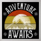 Adventure Awaits! This vintage distressed accessory is great for a man, woman, teens & kids who are hikers, campers, backpackers, geocachers and adventurers who love to travel, use a compass & go wandering in the outdoors and wilderness. If you love adventure and love to go backpacking, camping, hiking and geocaching in the mountains and on hiking trails in the woods & forest, this design is for you! Includes a graphic of a mountain landscape set against a retro sunset.