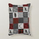 Patchwork design full of rustic woodland elements in red, grey and black. Deer, bear, arrows, and trees! Adventure Awaits!