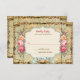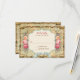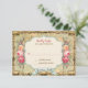 Reply card with vintage map of the world background embellished with roses and a banner that reads Adventure Awaits.