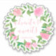 Pretty rustic watercolor greenery and pink flowers wreath , with inspiring "adventure awaits" quote in modern script with name.
