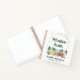 Cute rustic baby shower guest book featuring a cute illustration of woodland animals with their tent camping in the mountains and forest, an overlay of gold stars and "Adventure Awaits" and the mother-to-be's name in a dark hunter green script.