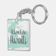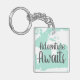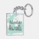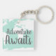 Adventure awaits key chain with a white world map silhouette and mint green.