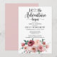 A pretty watercolor floral bridal shower invitation featuring a calligraphy script phrase: let the adventure begin. Blush pink, burgundy and greenery.