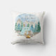"Adventure Forest Animals Camp Baby Boy Birth Stats Throw Pillow." Sweet forest animals of an owl, deer, bear, racoon and hedgehog are camping in the mountains. The message, "Let the adventure begin" in grey, textured typography and is combined with your baby boy's name, date, time, weight and length personalised. Art painted in watercolor by internationally licensed artist and designer, Audrey Jeanne Roberts, copyright