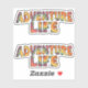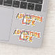 2-piece bonus vinyl sticker set! This 1960s inspired Adventure Life design features colorful tie dye text. Made for travelers, hikers, dreamers, and anyone who feels most alive chasing the next horizon. Put it on your car, laptop, notebook, camper van and more. | Available in glossy white, matte white, and transparent. Transparent stickers show best on light surfaces. For darker items, a white sticker base is recommended for better visibility and contrast.
