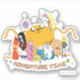Check out this fun group graphic featuring a large Jake with Lady Rainicorn, Lumpy Space Princess, Marceline, Flame Princess, Peppermint Butler, Princess Bubblegum, Tree Trunks, Finn, BMO, Ice King, Cinnamon Bun, and Lemon Grab!
