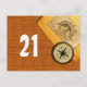 Adventure Wedding Table Number Postcard featuring an antique compass, a stegosaurus dinosaur skeleton information plate on a piece of paper and a wood look digital art background. This cool table card is perfect for an archaeology adventure or museum themed wedding. Easy to customise, simply add the appropriate table number(s) in the text field provided. Click "Customise It" to find more personalisation options.