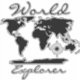 Whether setting sail on the high seas, or flying to unknown destinations, this sticker is perfect for your suitcase! It features a large black world map silhouette and black script saying "World Explorer". There is also a modern styled compass design. Decorate for your grand adventure! Place onto a wall in your library for a world traveller feel.