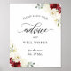 Red White Rose Floral Wedding Advice and Well Wishes Sign Poster.