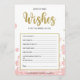 This modern floral "Advice and Wishes" bridal shower game features a pink floral background with golden glitter splashes. The text is written in a mix of a playful calligraphy font and a modern sans font, this Emoji Pictionary card is personalized with the Bride-to-be name and the Bridal Shower date.