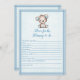 Adorable brown and blue baby bear for a boy's baby shower. Advice For Mummy baby shower game. Blue blanket with blue stitched edge border for background. Templates provided on back.