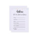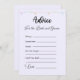 The cards feature the endearing phrase "Advice for the bride and groom" in a pretty black script font, lending an air of elegance to any bridal shower, wedding shower, or wedding celebration. The soft, captivating light purple background creates an aura of romance and tranquillity, symbolising the couple's boundless passion and the promise of a lifelong love story. At the top of each card, a string of delicately hanging lights adds a touch of whimsy, setting the perfect ambiance for heartfelt sharing and meaningful exchanges.