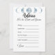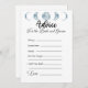 Make the bride's special day even more memorable with our Minimalist Moon Phases Celestial Blue Collection bridal shower game, "Advice for the Bride." This game is a simple yet heartfelt activity that allows guests to share their wisdom and well-wishes for the bride-to-be. The design features a clean white backdrop that highlights the celestial theme, with the five phases of the moon displayed in a beautiful light blue colour at the top of the game card.