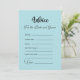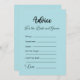 Introducing "Advice For the Bride and Groom," a heartfelt and meaningful bridal shower game that goes beyond entertainment, providing a safe and nonconfrontational platform for family, friends, and loved ones to offer their invaluable advice and well-wishes to the happy couple. Set against a serene powder blue background, the words "Advice for the bride and groom" are delicately scripted in pretty black font, exuding an air of elegance and tranquillity, making it a delightful addition to any celebration.