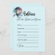 The exquisite design features the phrase "Advice for the bride and groom" in a pretty black script font, setting a tone of elegance and tenderness for this special activity. The soft light blue background, complemented by a delightful rainbow-coloured owl and a radiant full moon in the top left-hand corner, symbolises wisdom, harmony, and the promise of a bright and joyous future together.
