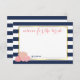 Gather advice for the bride-to-be with these sweet cards. Place a stack at the entrance to the party, leave one at each place setting, or pass them around. Features a midnight navy blue stripe background, faux gold border, and a group of peonies in pretty blush tones. Coordinates with our Midnight Blush Peony office supplies, paper products, home goods and accessories.