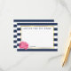 Gather advice for the bride-to-be with these sweet cards. Place a stack at the entrance to the party, leave one at each place setting, or pass them around. Features a bold navy blue and white stripe background, faux gold border, and a pretty pink peony in soft watercolors. Tons of coordinating items available, from bridal shower games and favours to housewares and office accessories.
