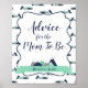 Adventure awaits mountains mint navy baby shower Advice for the Mum To Be sign