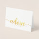 Etched Gold Foil Advice for the Newlyweds Greeting Card is perfect for each of your guests who attend your wedding. The words "Advice for the Newlyweds" are actual foil printed/etched onto the paper and is smooth to the touch. Customise the interior text with your desired message or remove to have it blank and to be able to handwrite your own message.