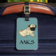 Hilarious cute pug puppy dog cartoon luggage tag design is unique and fun and a great gift idea. Customise your initials on the front and personal info on the back. Fun colourful design helps to identify luggage quickly.