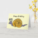 Hilarious cartoon snail birthday card says happy birthday on the outside and inside is another snail with a slime trail behind and says Rush out and Celebrate. Cute and fun.