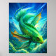 In the image, a vibrant green fish gracefully swims through a bright blue sky, defying the laws of nature. The fish’s scales shimmer in the sunlight, reflecting shades of emerald and lime. Its fins are spread wide, creating a sense of motion and elegance as it glides through the air. Fluffy white clouds drift in the background, enhancing the surreal atmosphere of the scene. The combination of the fish and the sky creates a whimsical and enchanting image, inviting viewers to imagine a world where anything is possible.