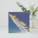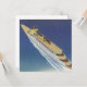 Vintage illustration travel and transportation image featuring an aerial view of a cruise ship vessel cruising on the sea. The ocean is a beautiful shade of blue on this sunny vacation day while the boat is making gentle waves and a wake. Bon Voyage!