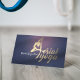 Elegant Aerial Yoga Studio Meditation Instructor Business Card Template - Elegant Purple and Gold Aerial Yoga Pose and Handwritten Script Typography on Purple Texture Background.