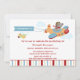 This 5x7 boy's birthday party invite has a cute puppy dog flying in an aeroplane. There is a banner being pulled behind with the child's name and age. The bottom has a red, green, blue, and yellow striped border. You can easily customise your party information in the middle. Copyrights © Sanqunetti Design