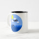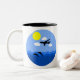aeroplane flying over water with dolphins Two-Tone coffee mug