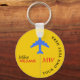 Graphic blue aeroplane on (custom colour) yellow_keychain, personalised with name and text... special for aviators, airport professionals or travel agencies