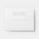 Envelope with a romantic rose gold blush pink travel theme aeroplane heart monogram on the outside, and printed return address that can be changed to any colour to match your travel theme or destination wedding colour theme. Click "customise further" to use the advanced editor for detailed design changes. Inside fill colour of the envelope can be changed to any colour.