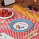 Cute aeroplane baby shower paper plates. Easily personalise for your party. Illustration by © Sanqunetti Design