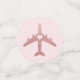 Romantic pink aeroplane on travel theme large table confetti perfect for a destination wedding or travel theme bridal shower, engagement party or reception celebration features a faux rose gold jet plane with a heart in the centre on a white background and alternating grey and white confetti designs.