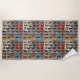 This beach towel features black aeroplane silhouettes, against an abstract, multicolored background. Aeroplanes are a montage of vintage, modern, civilian and military, as well as helicopters.