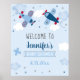 Aeroplane Stars Clouds Baby Shower Welcome Poster