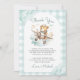 Aeroplane Teddy Bear Pastel Gingham 1st Birthday Thank You Card